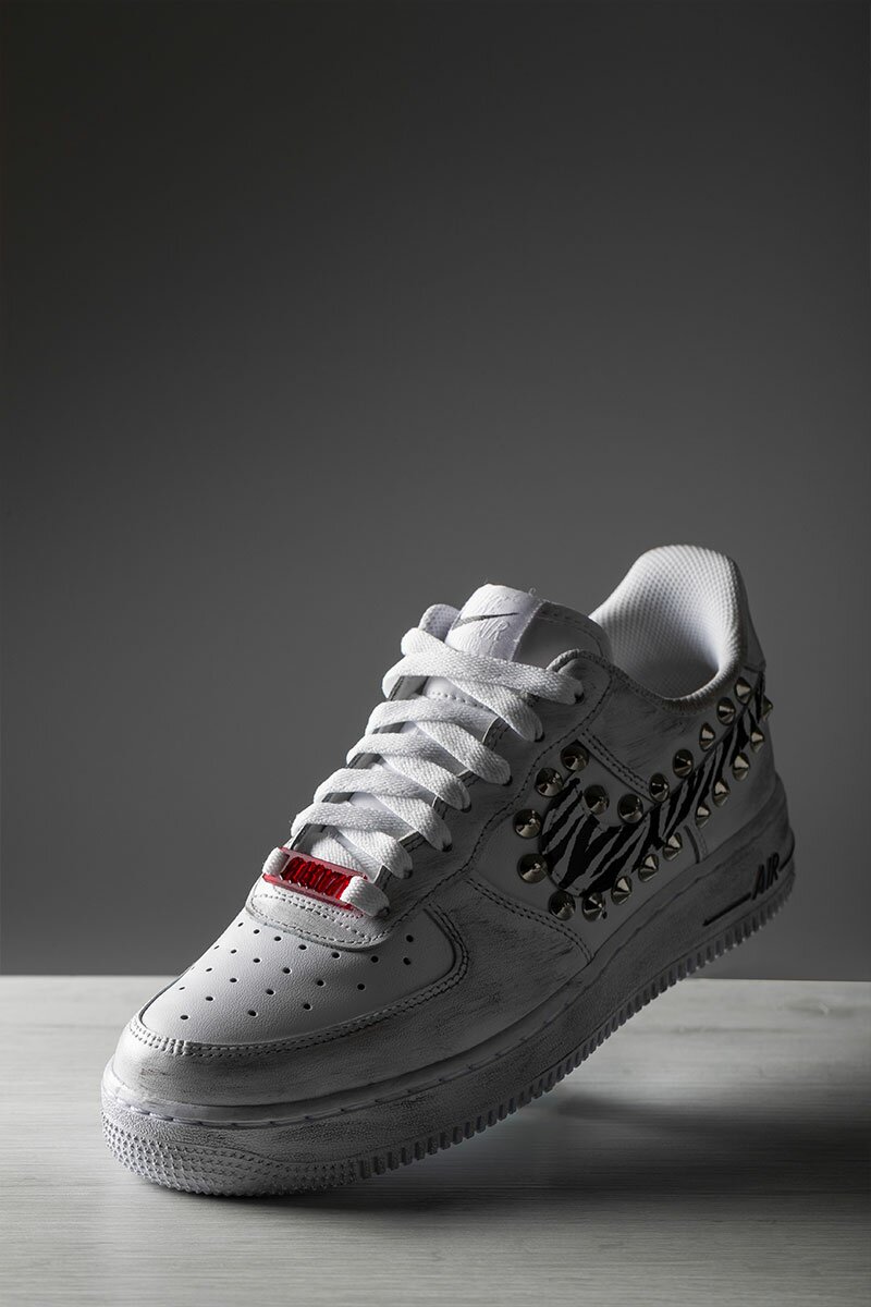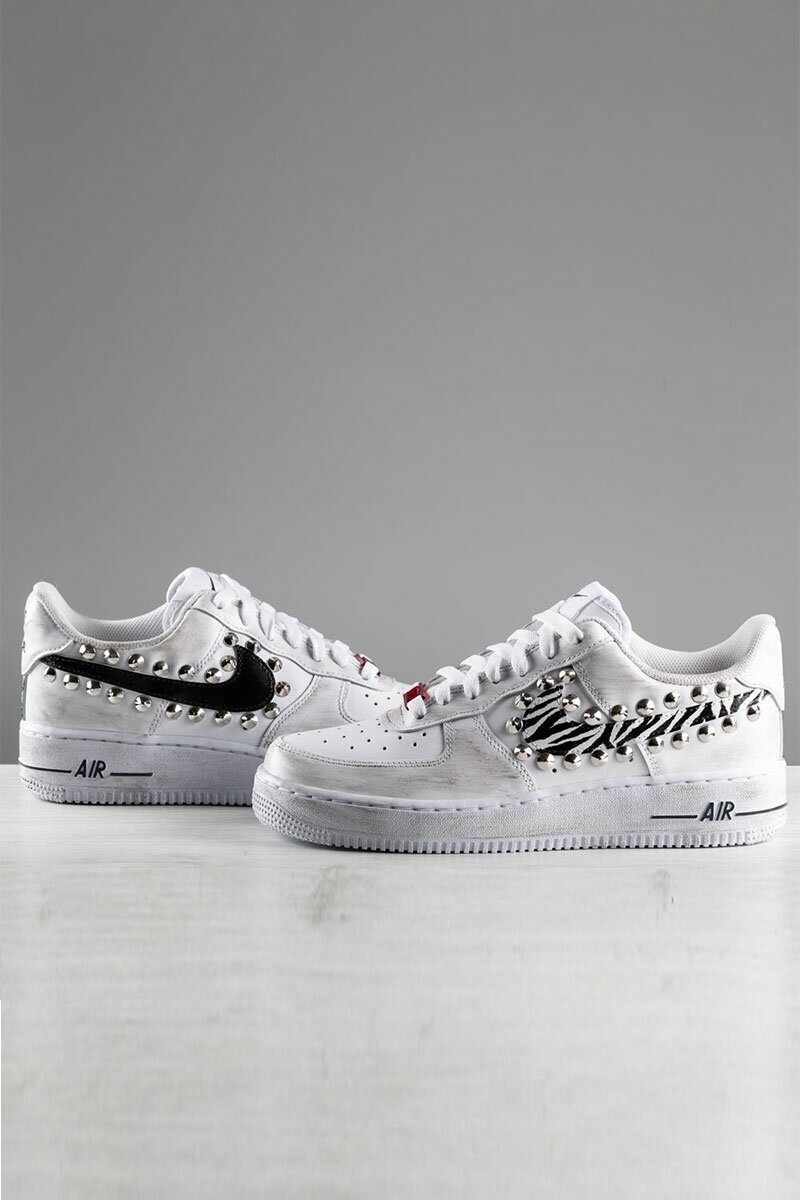 Le Nike Air Force 1 Animalier Style sono in mix stravagante con swoosh zebrato e borchie. Personalizzabile in ogni suo aspetto [pagina personalizzazione].